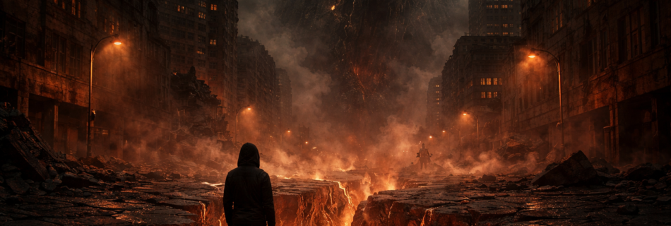 They always said the apocalypse would announce itself with trumpets. Celestial choirs. A press release from God, perhaps, embargoed until the appropriate hour. Instead, it arrived on a Tuesday with the sound of concrete tearing itself apart like wet cardboard, and a smell—Christ, the smell—like the inside of a furnace that had been stuffed with …